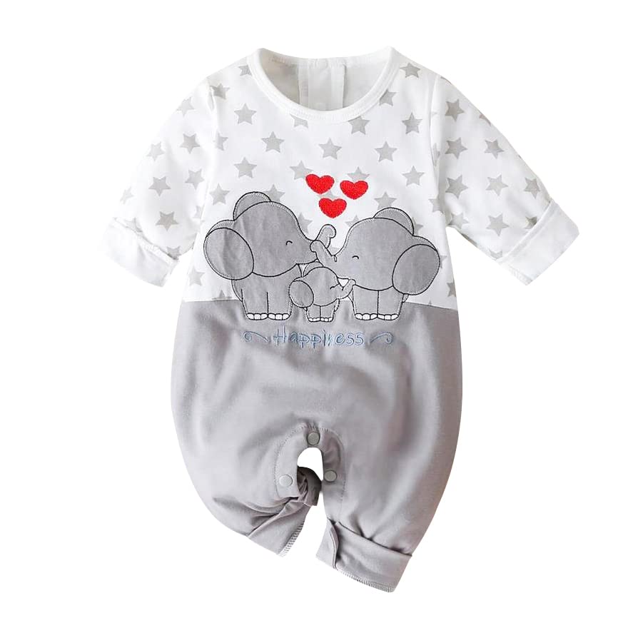 Aoswep All Over Star with Elephant Printed Jumpsuit Baby girl bodysuit (3-6 Months)