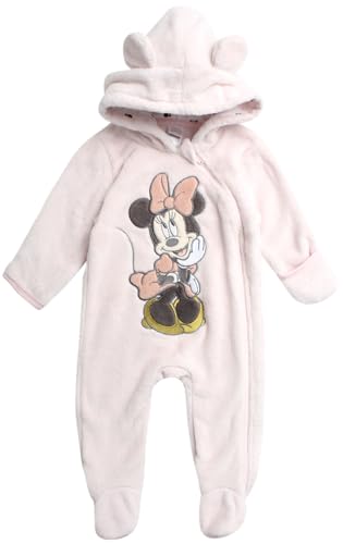 Disney Baby Boys Girls Winter Coveralls – Fleece Zip Footie Jumpsuit, Mitten Cuffs: Mickey Mouse Pooh Bear Minnie Mouse, 0-9M, Size 0-3 Months, Minnie Light Pink