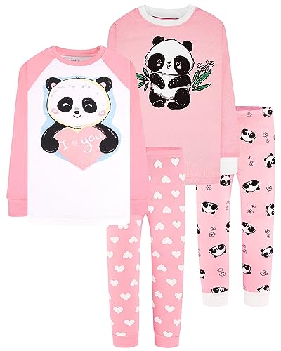 DAUGHTER QUEEN Girls Pajamas Toddler Panda PJs Kids Sleepwear 100% Organic Cotton Pj Sets Children 4 Piece Long Sleeve Jammies Heart Clothes Size 2T Age 2 Years Old