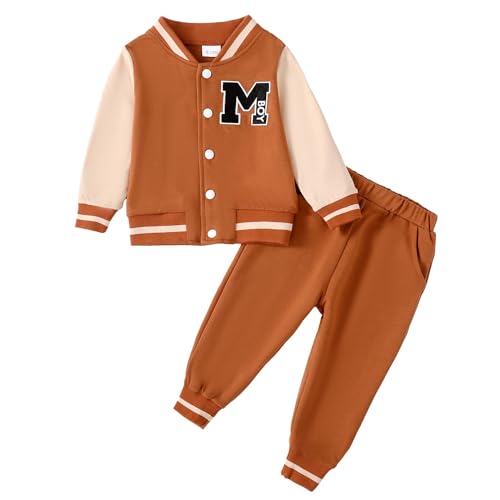 KIMI BEAR Toddler Boy Clothes 18-24 Months Baby Boy Clothes Cute Long Sleeve Button Down Varsity Jacket Winter Coat Fall Outfit Set 18 24 Months Boy Clothes