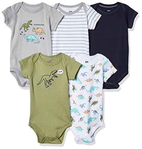 Hudson Baby Unisex Baby Cotton Bodysuits, Dinosaurs, 3-6 Months