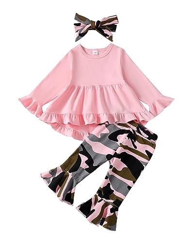 Renotemy Infant 9-12 Months Girl Clothes Fall Winter Baby Outfits for Girls Long Sleeve Tops Camo Flare Pants Cute Baby Girl Clothes 9-12 Months