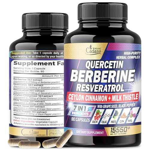 7in1 Pure Berberine Capsules 15550mg – Concentrated with Quercetin, Resveratrol, Grape Seed & More – Supplement for Heart, Body, Digestive & Immune – 90 Capsules for 3 Months