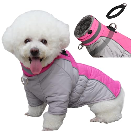 Afuwarm Dog Coats for Small Dogs, Zip Up Dog Clothes with Legs, Fleece Puppy Jacket with Harness, Waterproof Dog Vest for Cold Winter, Dog Puffer Snowsuit Windproof, Pink M