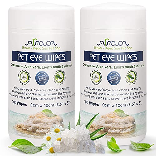 Arava Pet Eye Wipes – for Dogs Cats Puppies & Kittens – 100 Count – Natural and Aromatherapy Medicated – Removes Dirt Crust and Discharge – Prevents Tear Stain Infections & Irritations – Soft & Gentle (2 Pack)