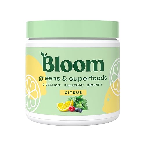 Bloom Nutrition Super Greens Powder Smoothie & Juice Mix – Probiotics for Digestive Health & Bloating Relief for Women, Enzymes with Superfoods Spirulina & Chlorella for Gut Health (Citrus)