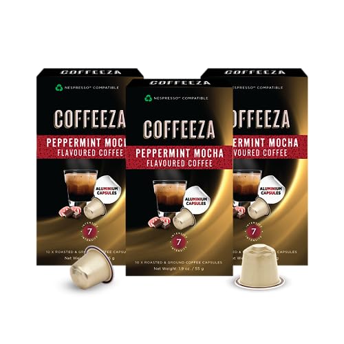 Coffeeza Peppermint Mocha Flavoured 100% Arabica Aluminium Coffee Pods, Medium-Dark Roasted Espresso Coffee, 30 Count Espresso Pods (NESPRESSO ORIGINAL LINE ONLY)