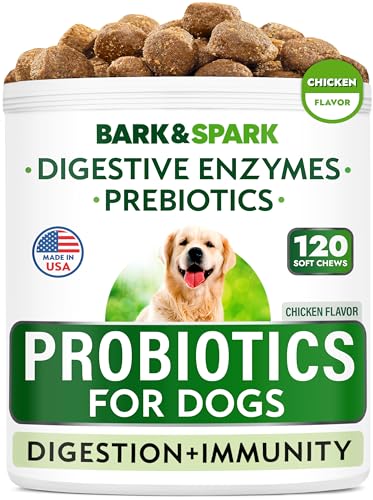 Dog Probiotics & Digestive Enzymes – Allergies & Itchy Skin + Gut Health – Pet Diarrhea Gas Treatment, Upset Stomach Relief Pills, Digestion Health Prebiotic Supplement Tummy Treat (120 Ct – Chicken)
