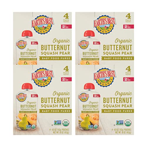 ORGANIC BUTTERNUT SQUASH AND PEAR PUREE POUCH: Includes four 4 oz pouches of Earth’s Best Organic Fruit and Vegetable Puree