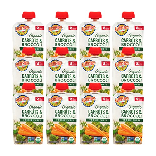 ORGANIC CARROT AND BROCCOLI PUREE POUCH: Includes twelve 3.5 oz pouches of Earth’s Best Organic Vegetable Puree