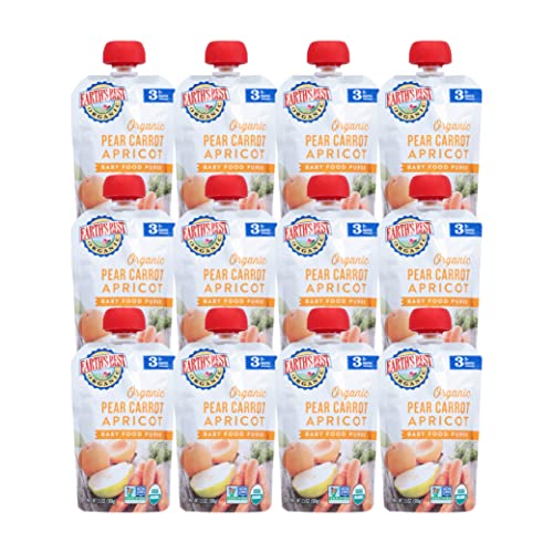 ORGANIC PEAR CARROT APRICOT PUREE POUCH: Includes twelve 3.5 oz pouches of Earth’s Best Organic Fruit and Vegetable Puree
