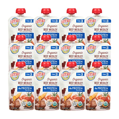 ORGANIC BEEF MEDLEY WITH VEGETABLES PUREE: Includes twelve 4.5 oz pouches of Earth’s Best Organic Protein Puree