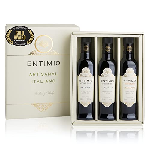 Entimio Collection | Italian Polyphenol Rich (+400-600mg/kg) 2023 Gold Award Organic Olive Oil Extra Virgin | 2022 Harvest from Tuscany, Italy, Early Harvest Olive Oil Set | 25.5 (3 x 8.5) fl oz