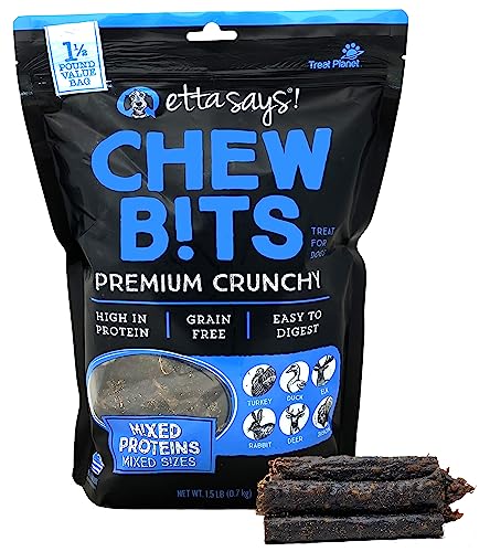 ETTA SAYS! Premium Chew Crunchy Dog Treats 1.5 Pound Bag – 100% Natural Dog Chews, Mixed Proteins and Sizes, Grain-Free, Made in The USA Dog Treats