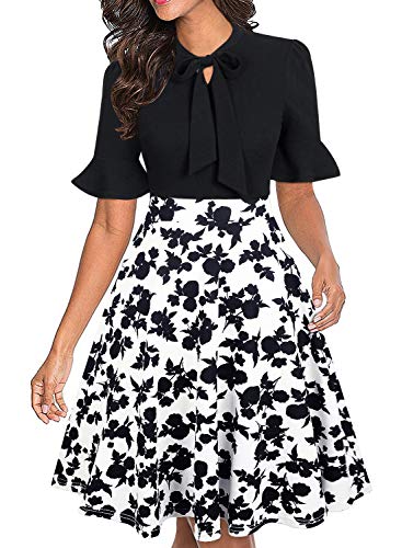 Floral Dresses for Women 2023 Wedding Guest Fall Ladies Elegant Flowy A Line Cocktail Dress with Sleeves L