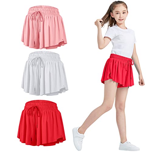 Flowy Skirt Shorts for Teen Girls Gym Yoga Athletic Workout Running Bike Fitness Women Cute Butterfly Tennis Skirts High Waisted Preppy Trendy Clothes Summer(Light Pink Cream red,Xs)