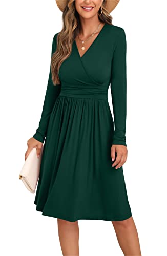 GRECERELLE Women Casual Long Sleeve Dresses, Green Dress with Empire Waist, Winter Dress for Women(Dark Green, Small)