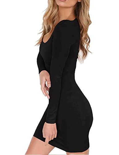 Haola Women’s Scoop Neck Long Sleeve Midi Party Bodycon Dress Lady Strench Club Dress XL Black