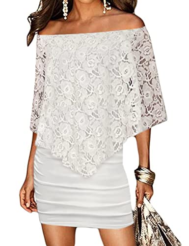 Haola Women’s Summer Cold Shoulder Off Ruffles Bodycon Mini Dress A-Lace White S