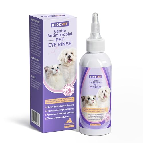 HICC PET Dog Eye Drops: Gentle Formula Eye Drops for Dogs and Cats, Flush & Soothe Eye Irritations – Remove Tear Stains – Improves Allergy Symptoms & Dry Eyes – Safe for All Animals, 5oz