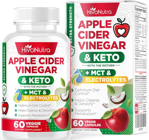 HivoNutra 4X Strength Apple Cider Vinegar Capsules + Keto & MCT Oil for Women & Men – Diet Supplement Helps Cleanse & Detox – Supports Healthy Diet – Vegan ACV Pills with Mother