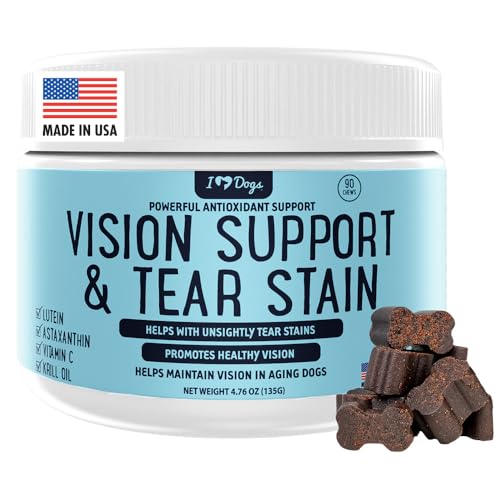 iHeartDogs Vision & Tear Stain Chews for Dogs – Dog Eye Care Supplement for Eye Moisture + Vision & Immune Support with Krill Oil, Lutein, Astaxanthin, Cranberry, Apple Cider Vinegar & Vitamin C