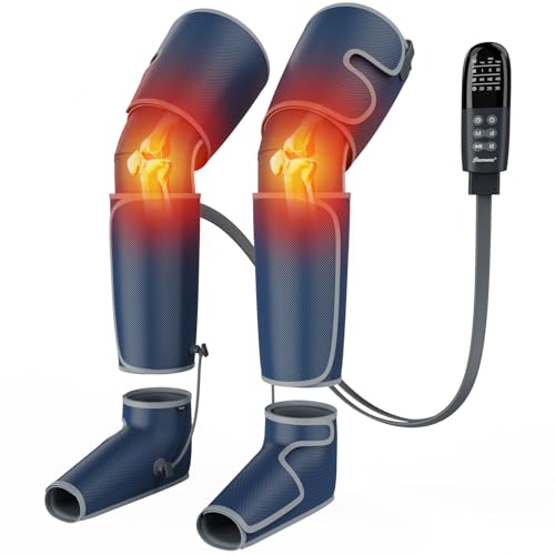 Leg Massager for Circulation and Pain Relief FSA HSA Eligible, Air Compression Foot Massager with 3 Heat Levels 4 Modes, 4-in-1 Foot Calf Knee & Thigh Massager, Knee Heating Therapy, Gift for Mom Dad