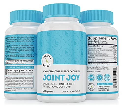Trusted Quality & Satisfaction Promise – At Legacy Wellness, we are committed to providing the pure highest quality joint supplements for men and women. Our JOINT JOY glucosamine chondroitin capsules are made in a GMP, NSF certified facility. Trust Legacy Wellness JOINT JOY to support your joint health. This all-natural, non-GMO formula is sugar-free and contains no binders, dairy, yeast, fillers, hormones, or preservatives.