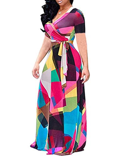 Locryz Women Dress African Print V Neck Short Sleeve Faux-Wrap Long Dresses Red …