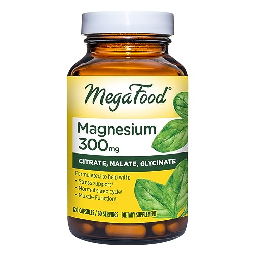 MegaFood Magnesium 300 mg – Highly absorbable Blend of Magnesium Glycinate, Magnesium Citrate & Magnesium Malate to Help Support Heart, Nerve Health and Relaxation – 120 Capsules (60 Servings)