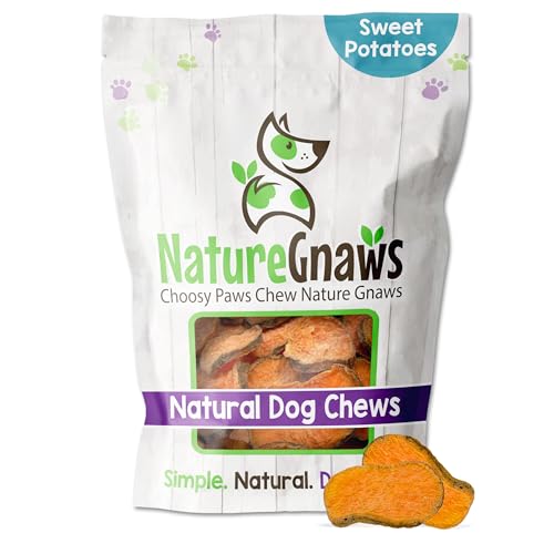 Introducing Nature Gnaws Sweet Potato Chips for Dogs – a single-ingredient, 100% natural, vegetarian and vegan chew treat that’s perfect for your dog. Whether you’re looking to enhance training sessions or offer a delightful reward, these chips are crafted for both taste and health. Their satisfying texture and rich flavor make them an ideal choice to motivate your furry friend during training activities. This chips also contribute to dental hygiene by effectively reducing plaque and tartar buildup, promoting healthier teeth and gums. Give your beloved companion the best of both worlds with Nature Gnaws.