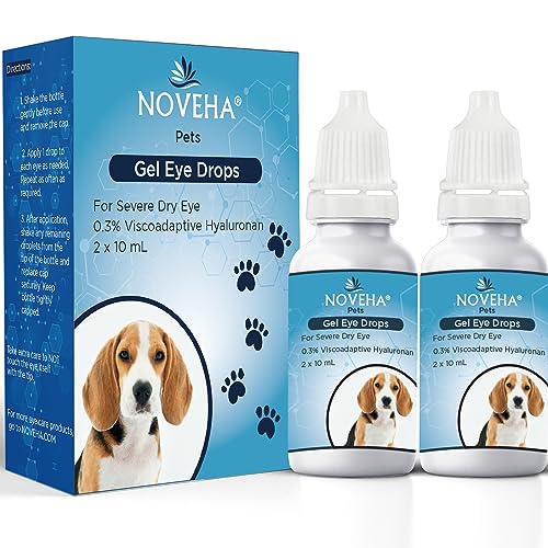NOVEHA Pet Gel Eye Drops with 0.3% Viscoadaptive Hyaluronan | Eye Solution for Severe Dry Eyes – Long Lasting Hydration, Reduces Nuisance, Swelling & Dryness – Eye Lube for Dogs and Cats (2x10mL)