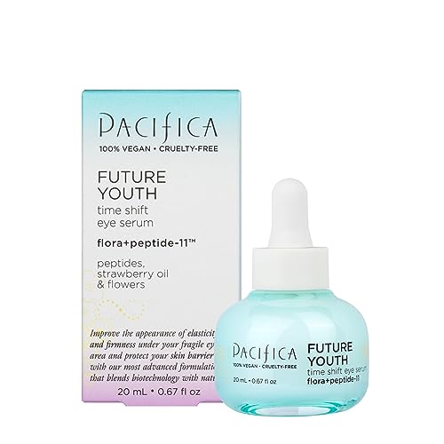 Future proof your skin with our most advanced formulation to address signs of aging. Pacifica’s fragrance-free Time Shift Eye Serum is your skin-vestment, fortified with Flora+Peptide 11TM, our longevity complex with multi-peptides, phytonutrients, peptides, strawberry oil, flowers and kombucha. This lightweight unscented gel serum is designed to significantly improve the look of crow’s feet, radiance and firmness (in just 4 weeks) for youthful-looking skin. Biotechnology meets nature without harming animals.
