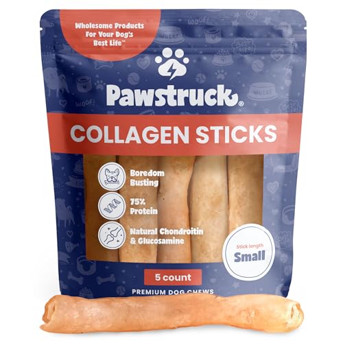 Pawstruck Natural 5-7″ Beef Collagen Sticks for Dogs – Healthy Long Lasting Alternative to Traditional Rawhide – High Protein Low Fat Dental Treats w/Chondroitin & Glucosamine – 5 Count