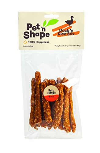 Pet ‘n Shape Duck ‘n Rice Stix are made from naturally delicious white meat chicken mixed with white rice. Duck ‘n Rice Stix are perfect for puppies, adults and senior dogs of all breeds as a training treat or deliciously crunchy reward. Pet ‘n Shape treats contain no artificial colors, additives, or preservatives and are free of any wheat, corn and soy. All products U.S. lab tested for safety; carefully roasted to ensure optimal quality and delicious flavor. Resealable packaging locks in freshness and is ideal for easy storage.