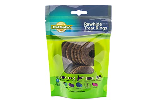 Keep your pooch stocked in treat rings with the Petsafe Rawhide Treat Rings. They are a great way to reward your dog after training sessions and keep your dog playing longer. Available in 3 sizes to fit the PetSafe treat-holding toys. For dogs over 6 months old. PetSafe brand is here to help you and your pet LIVE HAPPY TOGETHER.