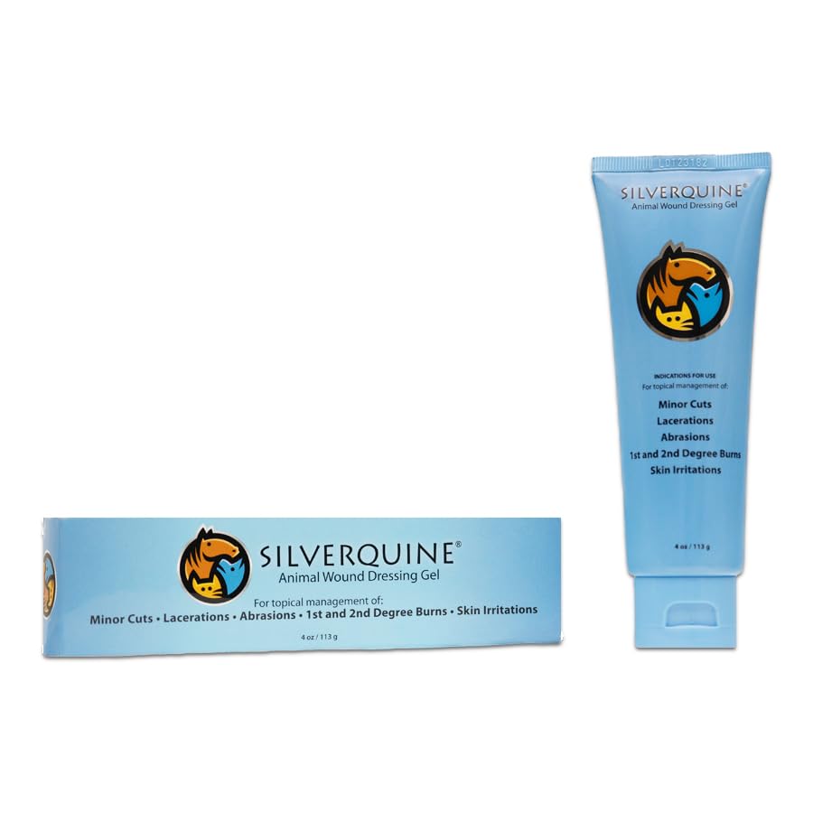Silverquine® Advanced Antibacterial Hydrogel Wound And Skin Care for pets is a multi-purpose antiseptic gel that helps protect damaged skin from infection and assist in the protection and healing of Minor Cuts Lacerations, Abrasions, 1st and 2nd Degree Burns, Skin Irritations, cuts, open blisters, abrasions, scratches, insect bites, stings, pressure sores. Silverquine® Hydrogel is safe for use, non-toxic and easy to apply. Silverquine® Hydrogel uses a patented Hybrid Silver Nano-Particle Technology that combats and control the growth of infection in wounds and dressings. Silverquine® Hydrogel was evaluated in standardized testing to demonstrate the elimination or reduction of common infection microorganisms such as Staph Aureus, Pseudomonas Aeruginosa, Escherichia Coli, Candida Albicans and Aspergillus Niger (USP-51). Silverquine® translucent gel contains no irritating sulfates, will not sting or harm new granulated tissue. Silverquine® will not adhere to wound surface and will promotes healing while providing a soothing cooling effect to the affected area.