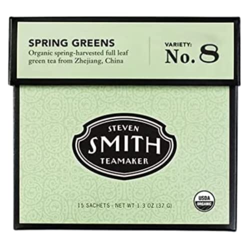 Smith Teamaker | Spring Greens No. 8 | Organic Mao Feng | Caffeinated Full Leaf Green Tea | Sugar-Free, Non-GMO, Plant Based (15 Sachets, 1.3oz each)