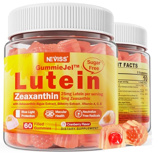 ✔SUGAR FREE LUTEIN GUMMIES: Tired of swallowing big lutein capsules or softgels? Try our sugar-free Lutein & Zeaxanthin gummies! Each serving contains 25mg lutein, 5mg zeaxanthin plus 5 essential nutrients for the eyes! GummieJel eye vitamins gummies filling technology wraps PH-sensitive lipophilic ingredients inside the gummies to enhance absorption. Better help you filter blue light from digital devices, strengthen macular area, lutein and zeaxanthin supplements support overall eye health!