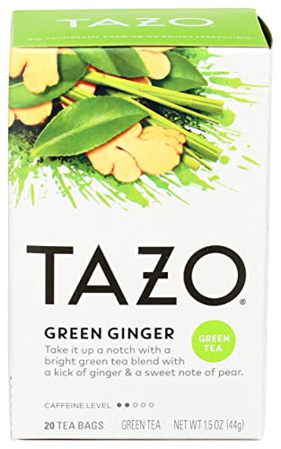 Package includes one box of 20 individually wrapped tea bags of Tazo Green Ginger Green Tea