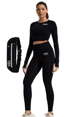 TruliaD 2-Piece Workout Sets For Women Athletic Fitness Gym Activewear Seamless Squat Proof Yoga Set With Waist Bag (Large, Elast, ELS-Black)