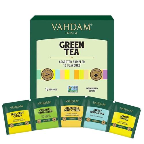 VAHDAM, Assorted Green Tea Sampler Variety Pack (15 Flavors, 15 Tea Bags) Christmas Gifts 2023 – Green Tea Variety Pack | Gifts For Women, Men and Adults