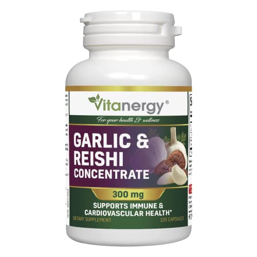 Vitanergy Garlic & Reishi Super Strength – Cardiovascular Health & Immune Support – High Potent Extract from Whole Garlic Bulbs and Reishi – 120 Capsules – No Aftertaste – Vegan Friendly