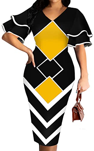 Women’s Sexy Church Dress V Neck Short Ruffles Sleeve Clubwear Elegant Pencil Bodycon Midi African Ladies Dresses