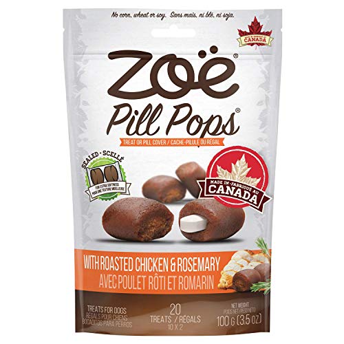 If medicine tasted like Roasted Chicken & Rosemary, it wouldn’t have such a bad rep! These chewy and soft dog treats combine real chicken, natural roasted chicken flavor and rosemary to mask medication and help dogs accept them fuss-free. Zoë Pill Pops are highly palatable dog treats and medication aids that take the stress out of giving medication to dogs. The dog treats are individually wrapped in 2’s to maintain their moist texture once the bag is open. Zoë Pill Pops come in three delicious flavors to appeal to all dog’s tastes. The flavors include: Roasted Chicken with Rosemary, Grilled Beef with Ginger, and Peanut Butter with Honey. Healthy, North American ingredients mean you can feel confident you are “treating” your pet well. You will receive one 3.5 oz. package of Roasted Chicken with Rosemary Pill Pops. Ingredients: Barley flour, chicken, vegetable glycerin, molasses, whey protein, natural roasted chicken flavour, rosemary, xanthan gum, citric acid, mixed tocopherols. Zoë Pill Pops are puppy and adult dog treats. Feed as treat or use as pill cover. Use one Zoë Pill Pop for tablets, use two for capsules. Recommended daily intake of 1 to 2 Pill Pops per day. Store out of direct sunlight in a cool, dry place. What goes into a name matters and a name well chosen should convey a product’s principal benefit. Translated from Greek, Zoë means life, and an energy-filled, healthy life is what all pet parents want and all pets deserve. That’s why Zoë pet food products are packed full of nature’s “good for them” ingredients. Zoë is focused on creating natural pet food products for a healthier, more active, fun-filled life. When you feed Zoë to your pet, you can be confident that you are treating them well. Life is too short to be serving average dog food. For some people life is about how much they have going on. But it’s also about life’s simple pleasures, like the time you take with your dog. The kind of moments that show them how much you love them so that they can love you back. And love is what Zoë is all about. Pure and simple food with natural ingredients that come in a variety of fun flavors your pet will love. Mix them up so your pet doesn’t give you the “I’m bored look” at mealtime. They’ll love you for it. Make it good. Make it healthy. Make it with love. Make it Zoë.